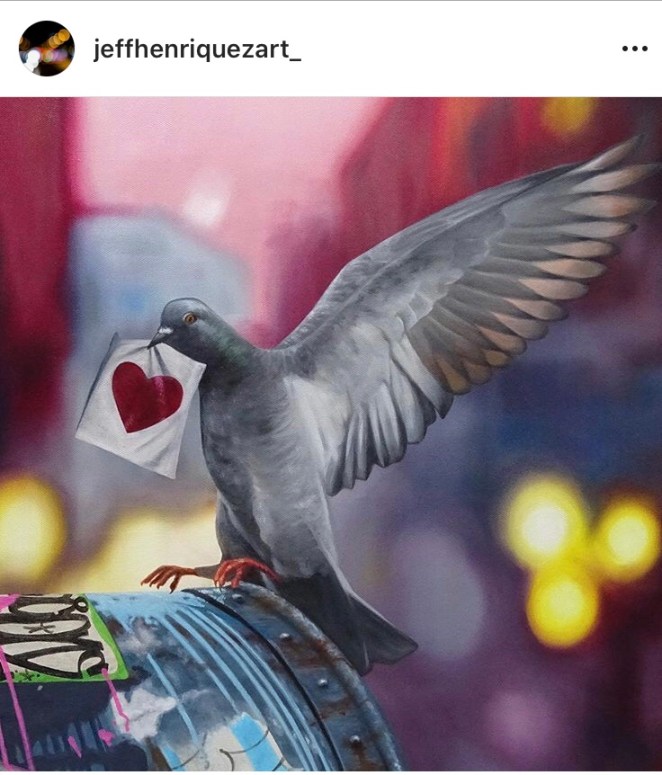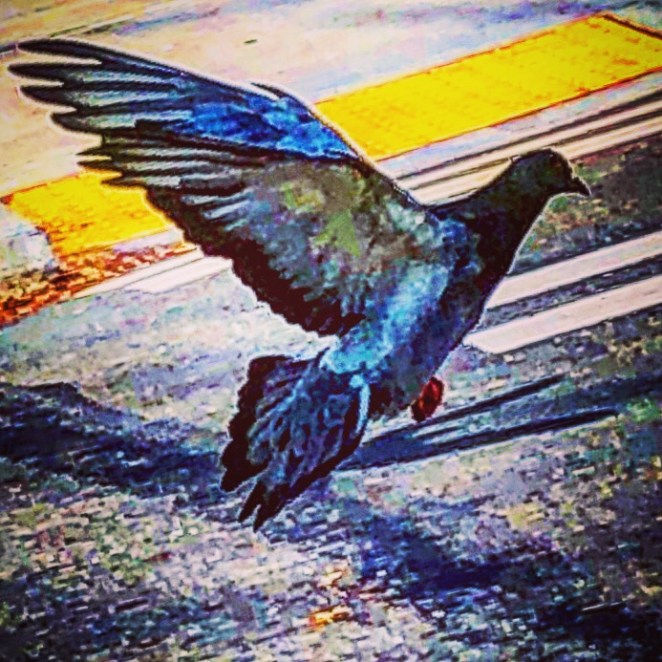 The photo is a pigeon taking flight outside a church in Seattle circa a past life when I went on a vacation. The pigeon is a nod to a series called Sending Love by my brother from another mother, Jeff Henriquez, a brilliant artist and the funniest person I know. Here’s a link to his work:
